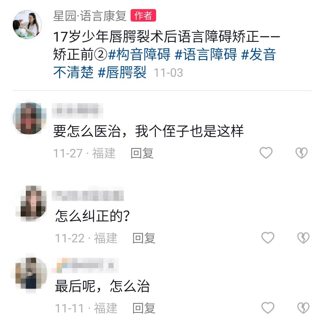 关于发音不清矫正的问题,我们在社交平台上收到好多条评论,都是询问:孩子发音不清的话,要怎么矫正?